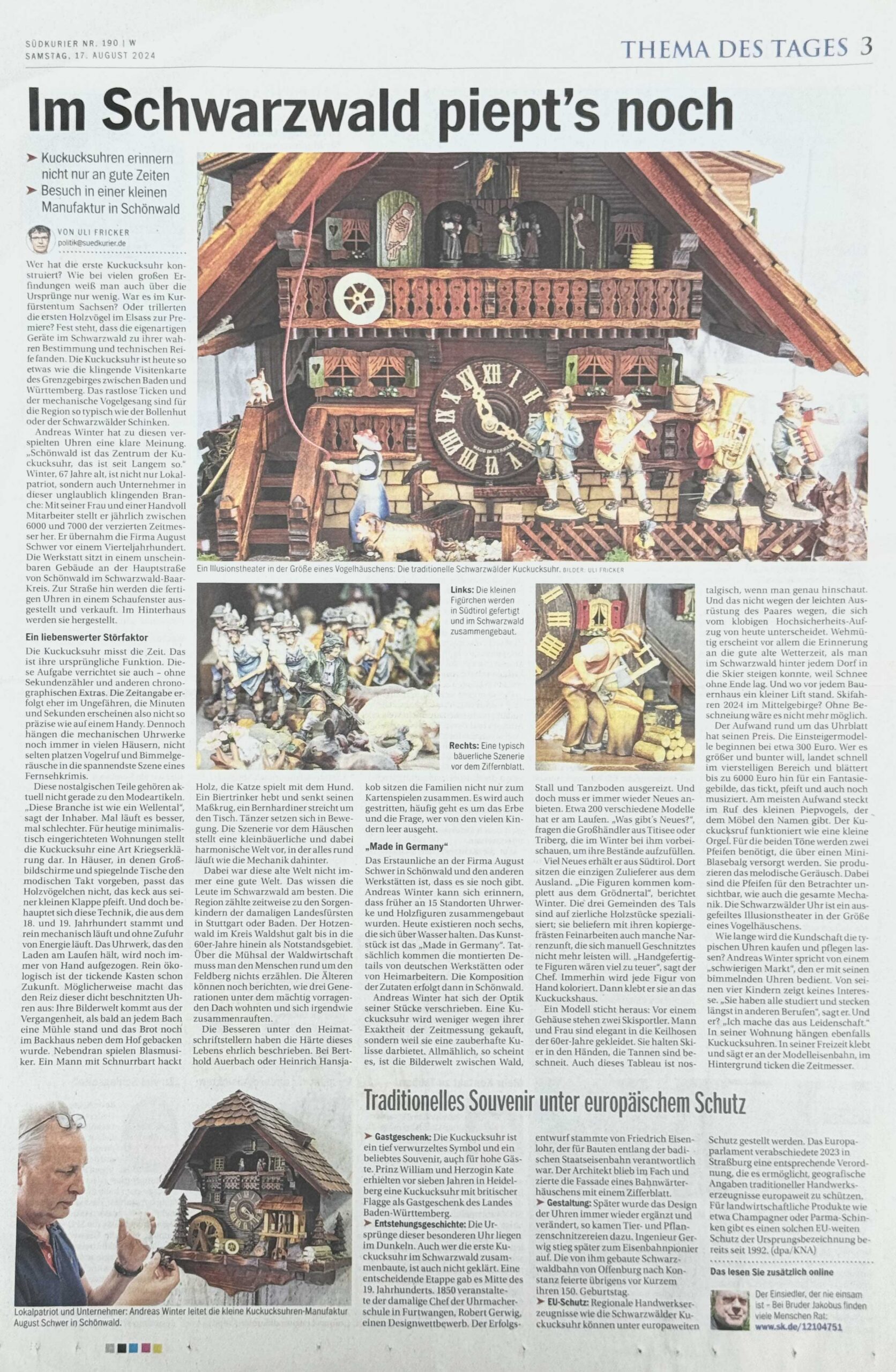 Kuckucksuhren erinnern nicht nur an gute Zeiten. Besuch in einer kleinen Manufaktur in Schönwald.