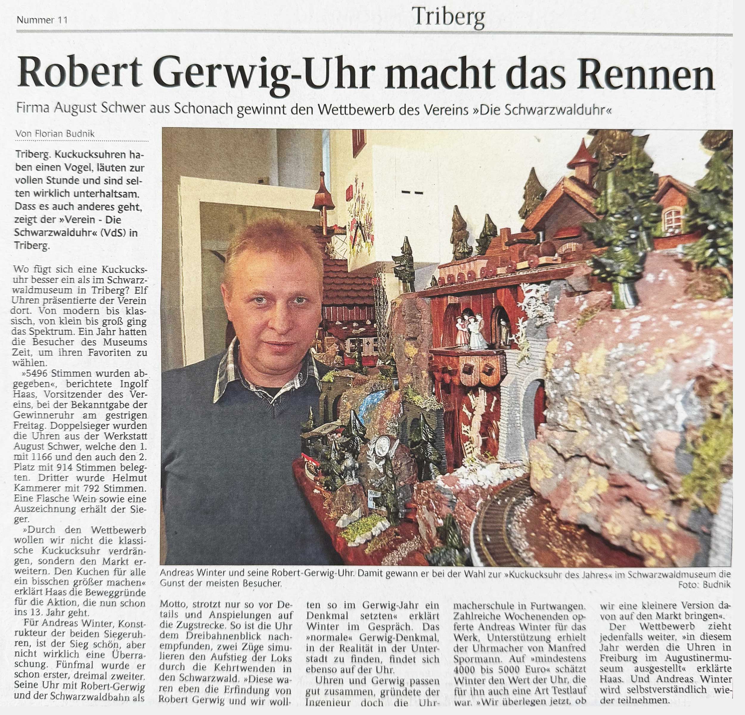 Firma August Schwer aus Schonach gewinnt den Wettbewerb des Vereins „Die Schwarzwalduhr“
