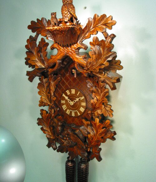 8-Tag Kuckucksuhr Schnitzerei Eulenpaar & Ranken