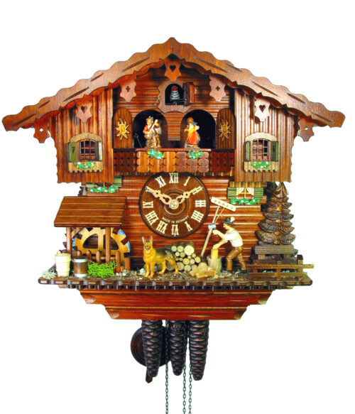 Kuckucksuhr "Schwarzwaldhaus, Mühlrad, Holzhacker"