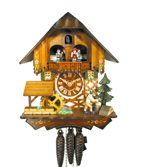 Kuckucksuhr "Schwarzwaldhaus, Mühlrad, Holzhacker"