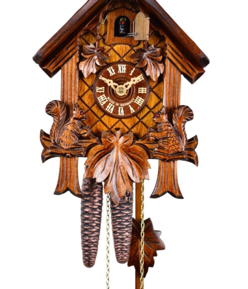 Kuckucksuhr 1-Tag-Werk "Haus, 3-Laub und Eichhörnchen"