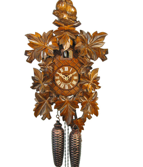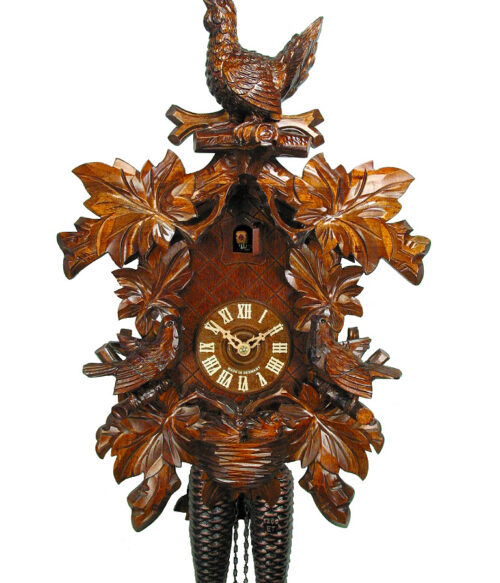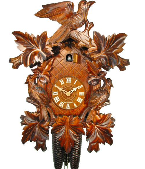 8-Tag Kuckucksuhr Schnitzerei "7-Laub mit 3 Vögeln"