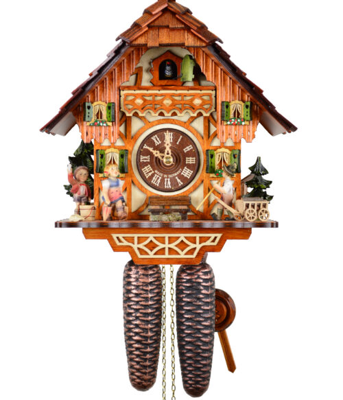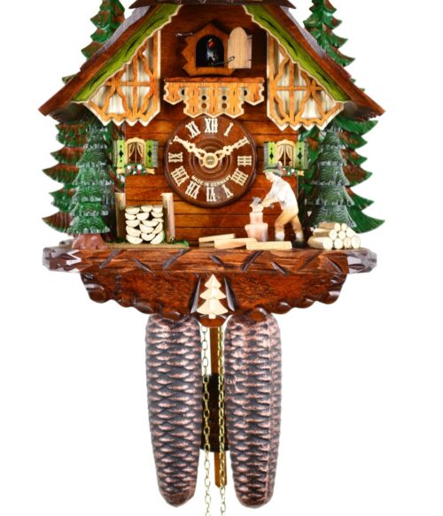 Kuckucksuhr Chalet Weihnachtsbäume, Holzhacker
