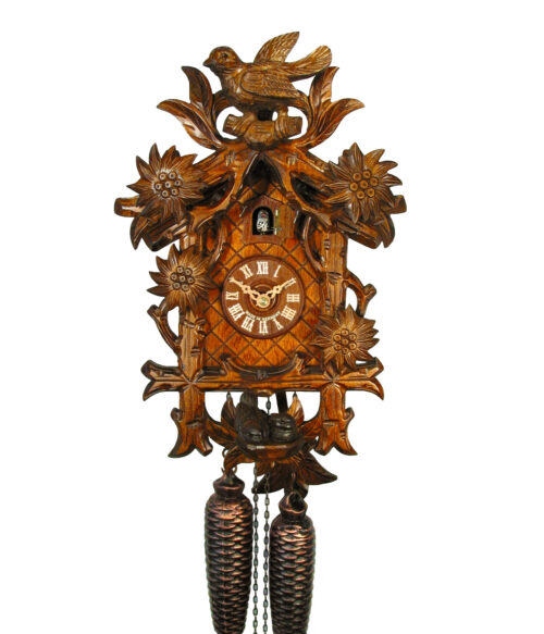 8-Tag Kuckucksuhr Schnitzerei Edelweiss & Vogel