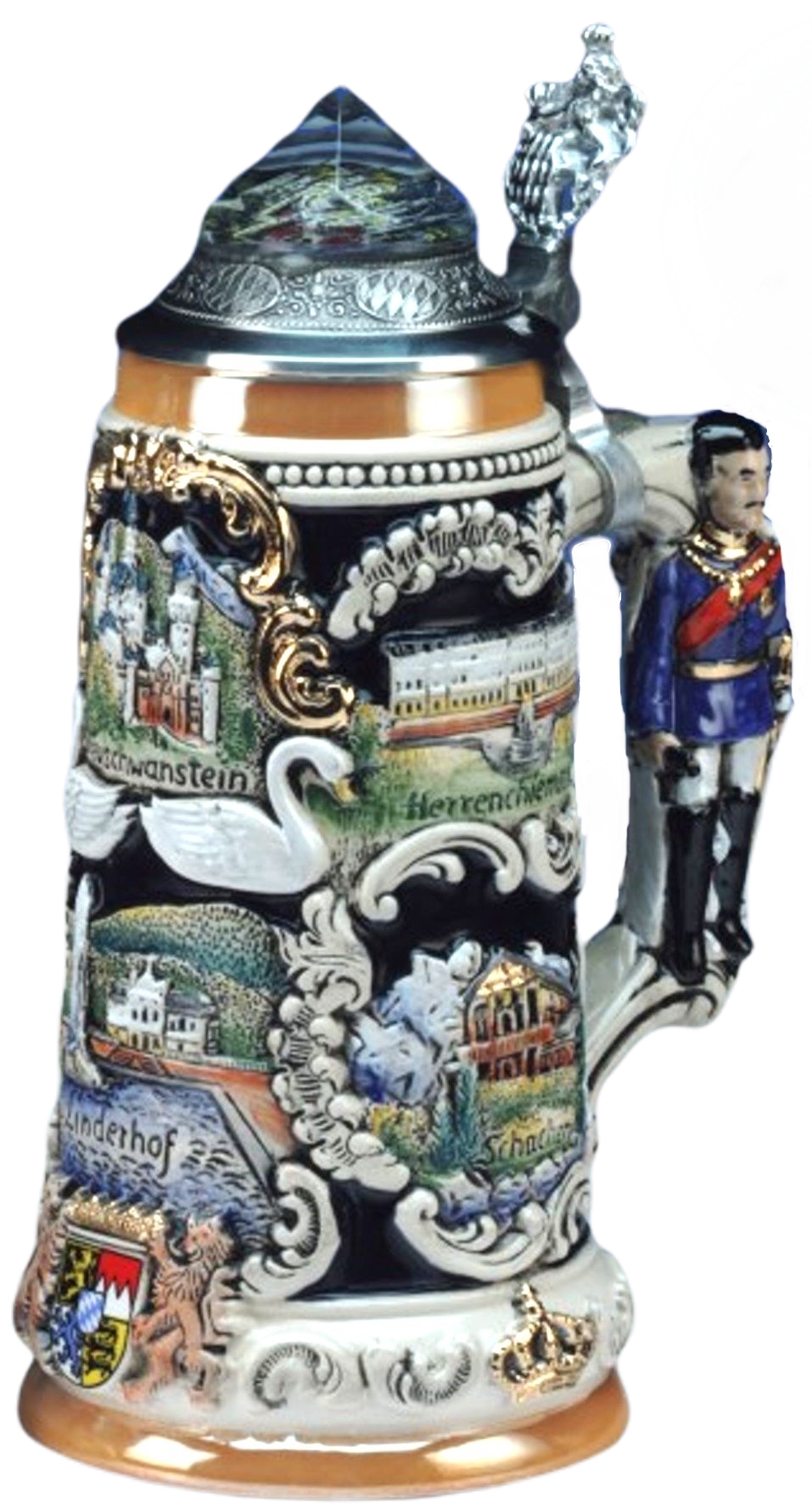 Product information “Bavarian castles 3/4 l jug with King Ludwig handle, crystal lid Neuschwanstein”