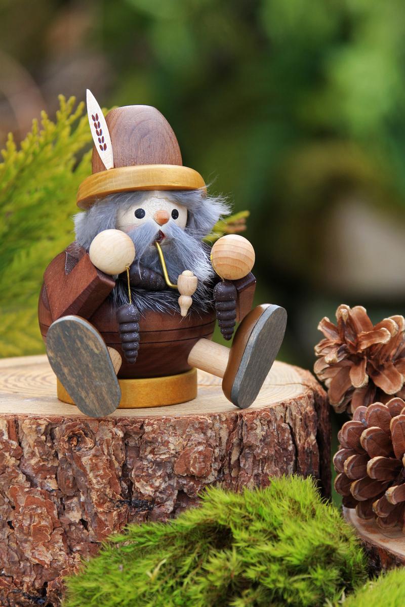 Richard Glaesser Rauchmann Waldschrat mit Zapfen sitzend aus Seiffen im Erzgebirge