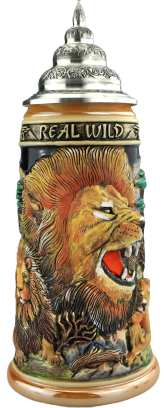 Löwe Reliefkrug, bemalt mit Zinndeckel
